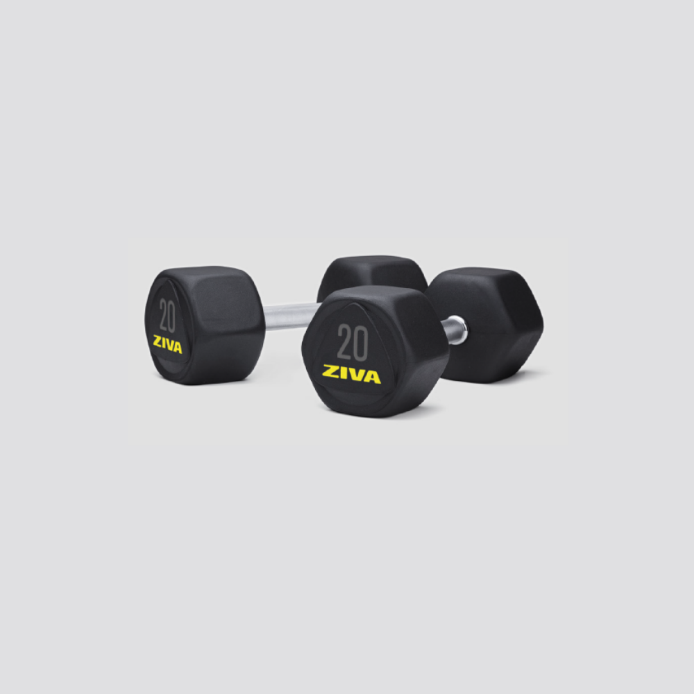 Mancuernas Hexagon RPU Performance · Ziva · De 2,5 kg A 20 kg · Par
