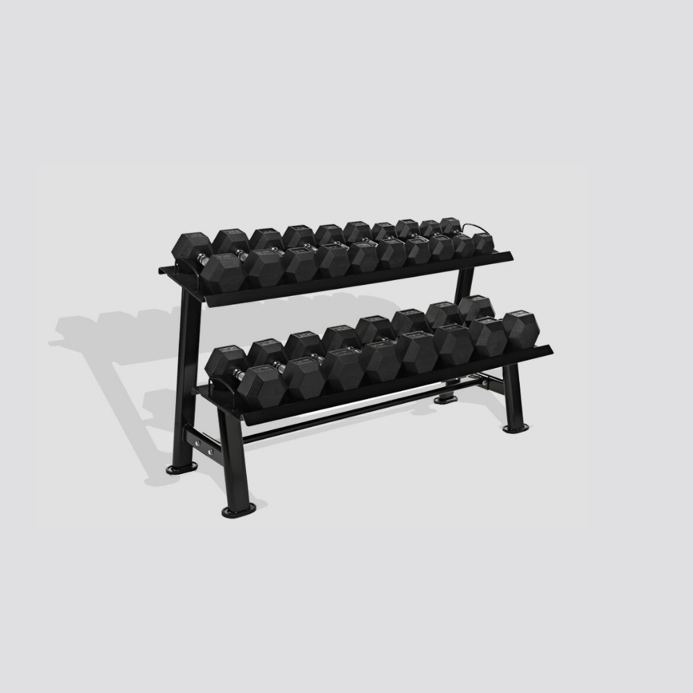 - Soporte mancuernas hexagonales de 2 alturas ( 143 x 75 x 60cm )